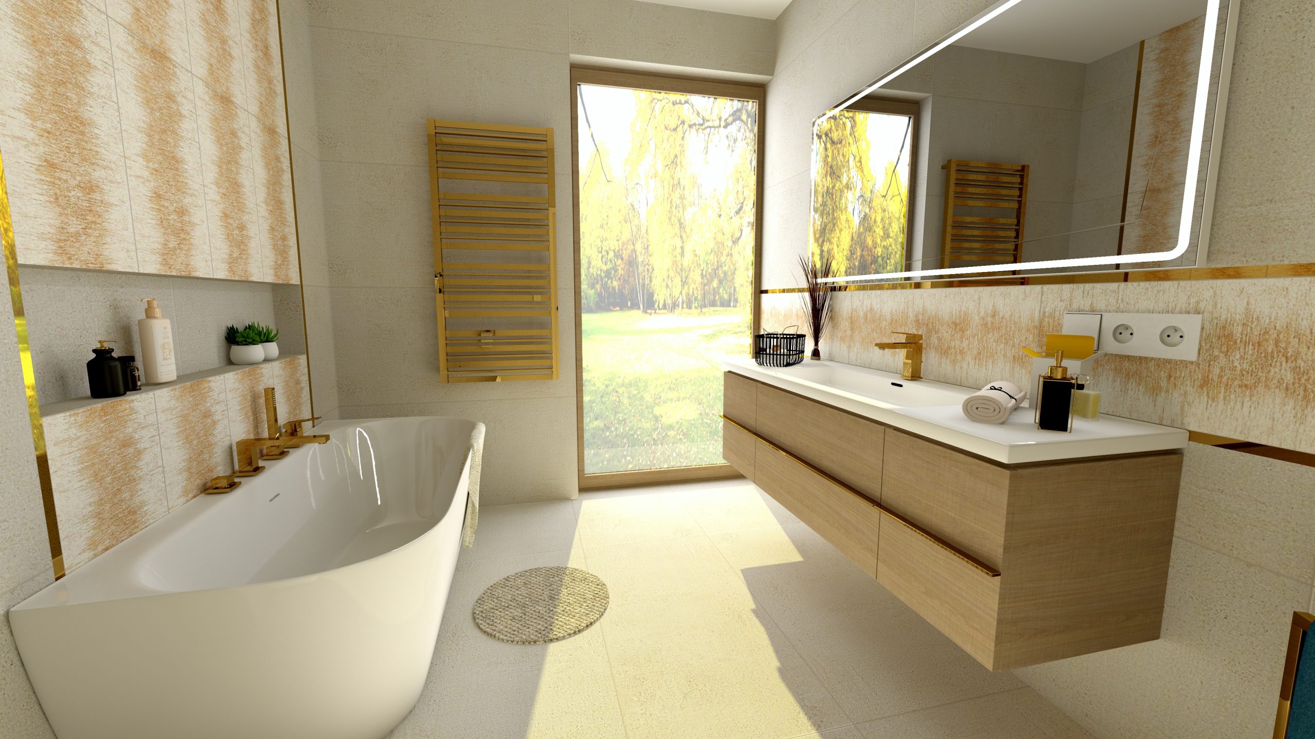 Svetlá krémová farba s jemným zlatým gradientom a zlatýmy doplnkami 🥇 Világos krémszín arany dekorációval és kiegészítőkkel